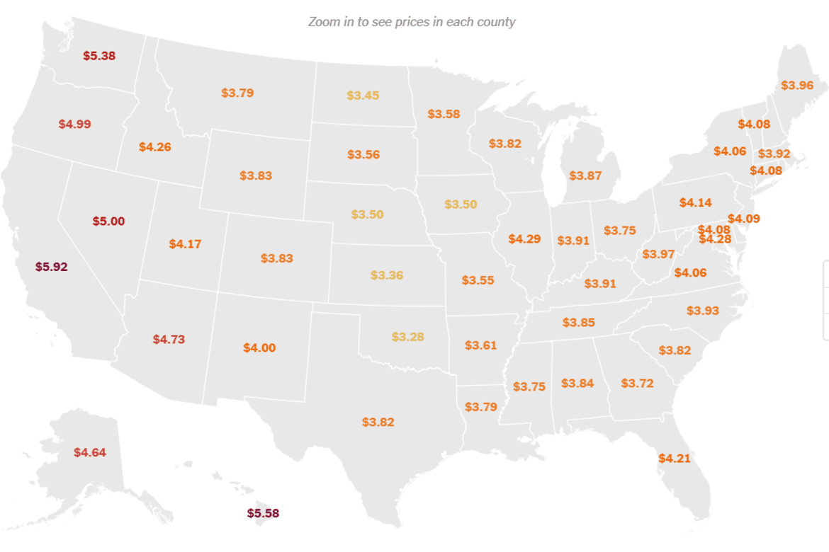 The New York Times has created an interactive visual that shows how gasoline prices vary across the United States, highlighting differences not only between states but also among individual counties. The map draws on weekly data from the American Automobile Association, illustrating how state fuel taxes, proximity to refineries, and regional distribution costs drive these price differences. The visual shows price differences using yellow for lower averages and deep purple for higher ones, offering a real‑time view of where fuel is cheapest and most expensive.