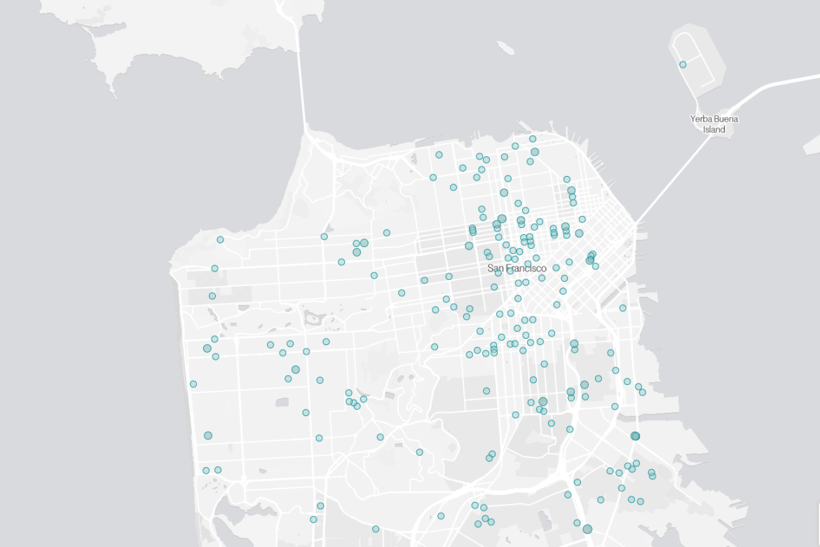 The San Francisco Chronicle has created an interactive map that shows where and when car break-ins occur across the city. Drawing on reports from the San Francisco Police Department, it tracks how often break-ins happen each month and how activity shifts by location and time. The map uses larger, darker blue circles to show areas with more incidents and smaller, lighter circles for areas with fewer cases, helping residents quickly identify patterns and higher-risk areas.